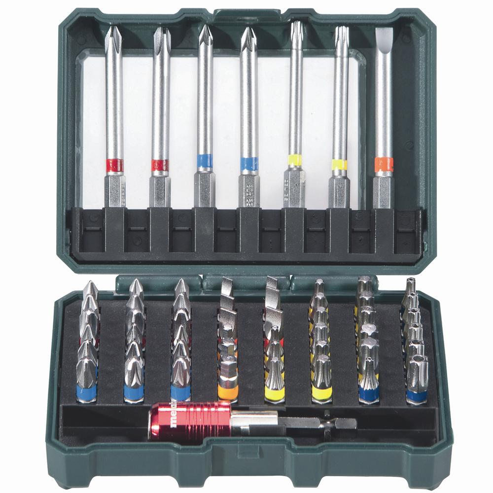 - Bestehend aus: S 2-Bits L= 25 mm (48 St.): PH 1 x 3, PH 2 x 3, PH 3 x 3, PZ 1 x 3, PZ 2 x 3, PZ 3 x 3, SL 4 x 2, SL 5 x 2, SL 6 x 2, H 3 x 1, H 4 x 1, H 5 x 1, T 10 x 2, T 15 x 2, T 20 x 2, T 25 x 2, T 27 x 2, T 30 x 2, T 40 x 2, TX Tamper: T 10 x 1, T 15 x 1, T 20 x 1, T 25 x 1, T 27 x 1, T 30 x 1, T 40 x 1 L= 75 mm (7 St.): PH 2 x 1, PH 3 x 1, PZ 1 x 1, PZ 2 x 1, T 20 x 1, T 25 x 1, SL 6 x 11 x magnetischer Schnellwechselbithalter