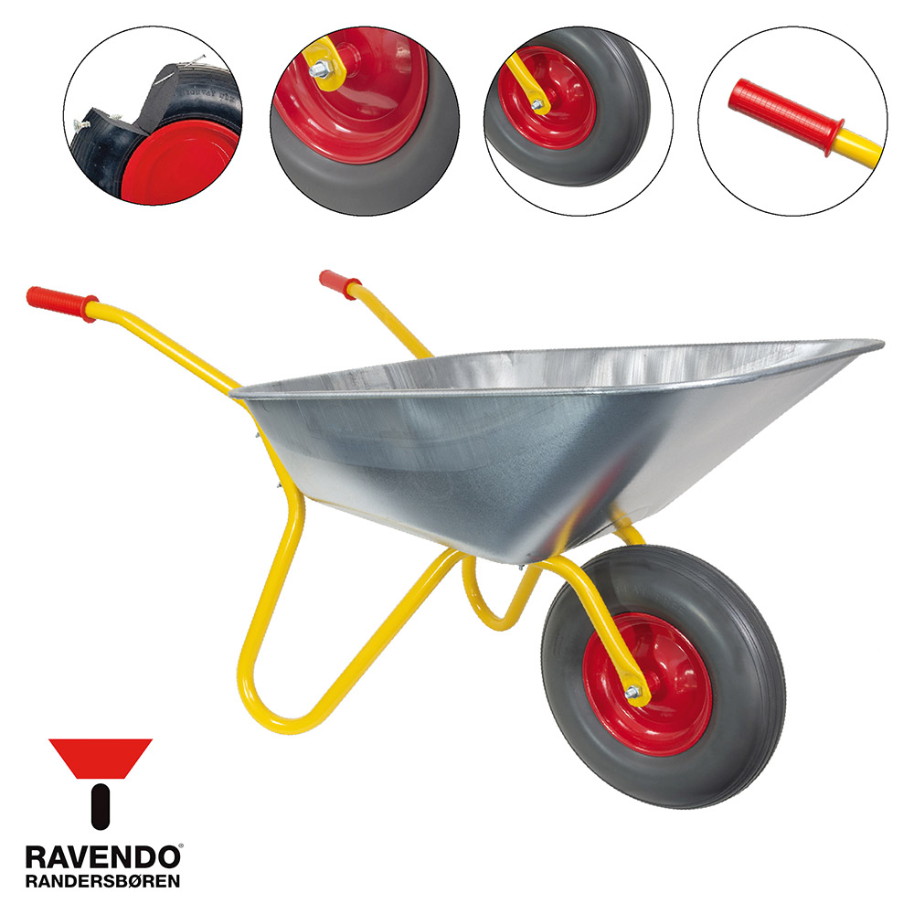 Die Ravendo BD1002 PUR ist eine Universalschubkarre, die besonders durch Ihre hochwertige Verarbeitung (Made in Dänemark; keine China-Ware) und durch Ihre Stabilität und Langlebigkeit überzeugt. Die 100 Liter Mulde und das qualitativ hochwertige und pannensichere PU-Rad mit Kugellager und Stahlfelge machten diese Schubkarre zu einem TOP-Seller der Firma Ravendo. Das Preis-Leisungsverhältnis ist bei dieser Schubkarre sehr gut.