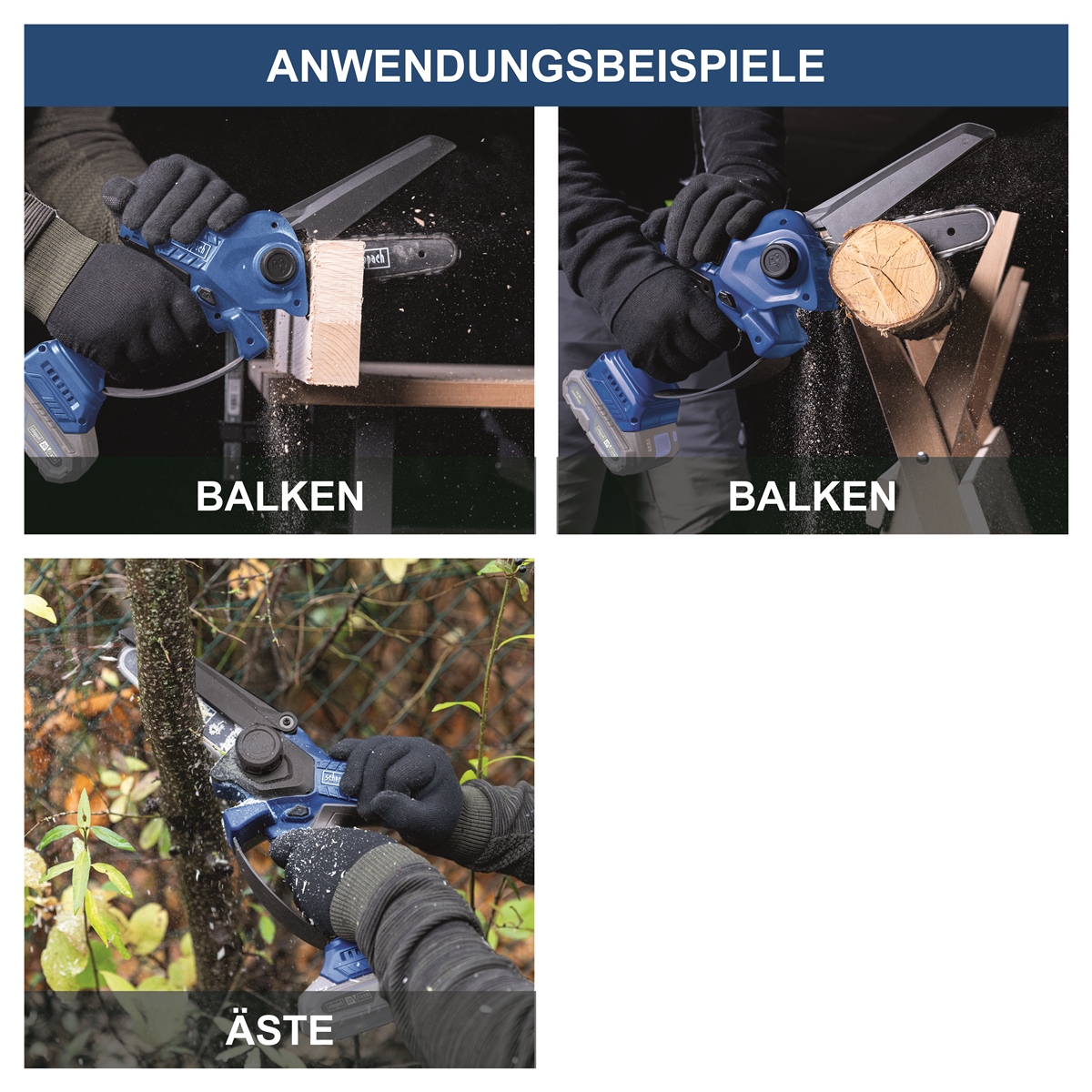 - Kompakter und leichter Akku-Gehölzschneider zum Beschnitt von Bäumen, Sträuchern sowie zum Zerkleinern von Grünschnitt
