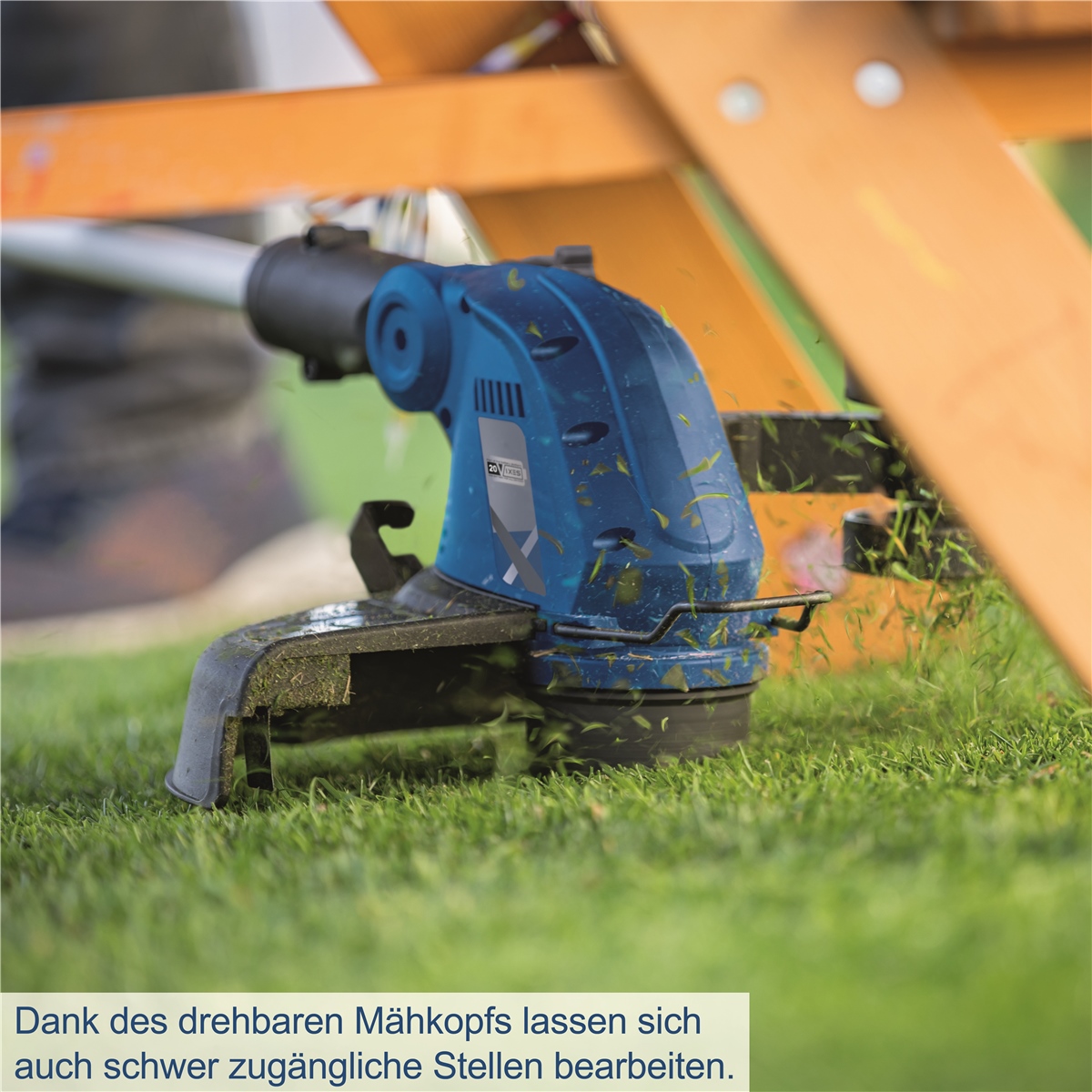- Praktische 2in1-Funktion: Rasentrimmern und Kantenschneiden