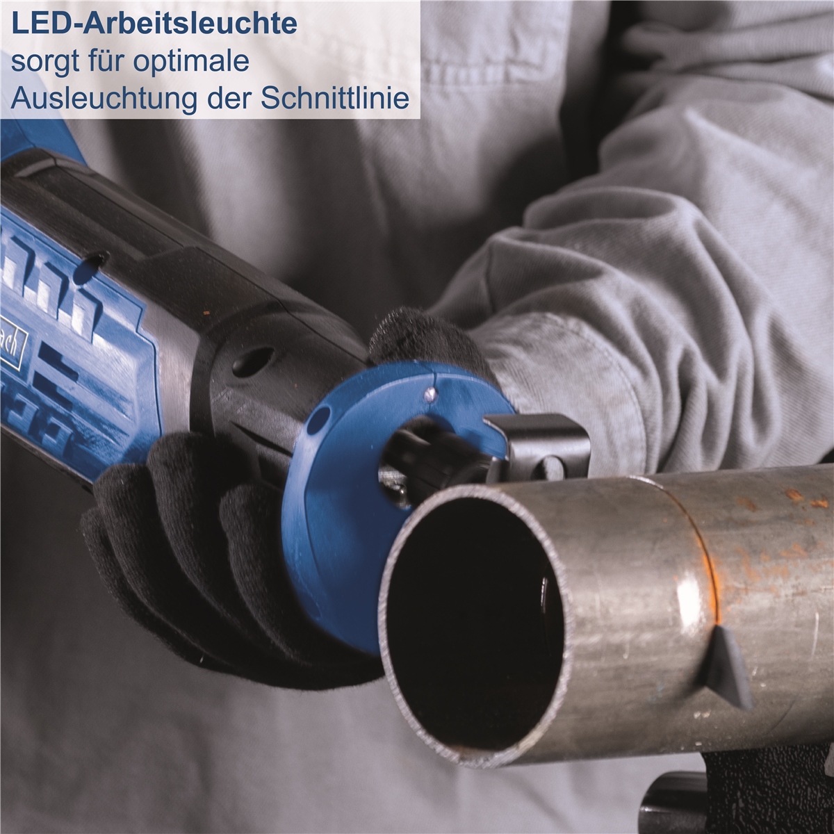 - Integrierte LED-Arbeitsleuchte sorgt für optimale Ausleuchtung der Schnittlinie