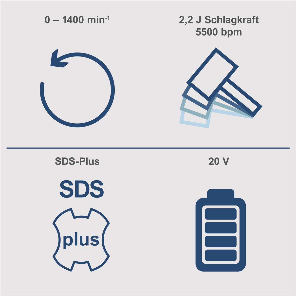- Kraftvolle 2,2 J Schlagkraft mit bis zu 5500 bpm