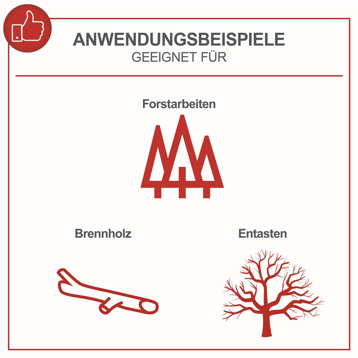 - Serienmäßige Einschaltsperre verhindert ein unbeaufsichtigtes Anlaufen der Sägekette