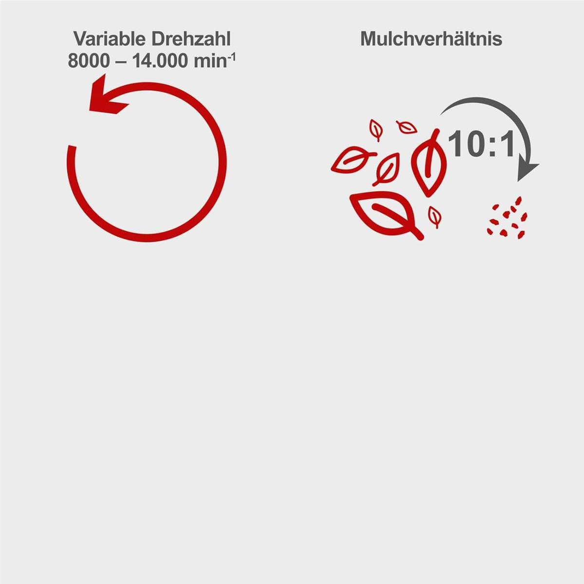 - Einfache, werkzeuglose Umstellung von Blas- auf Saug- / Häckselmodus