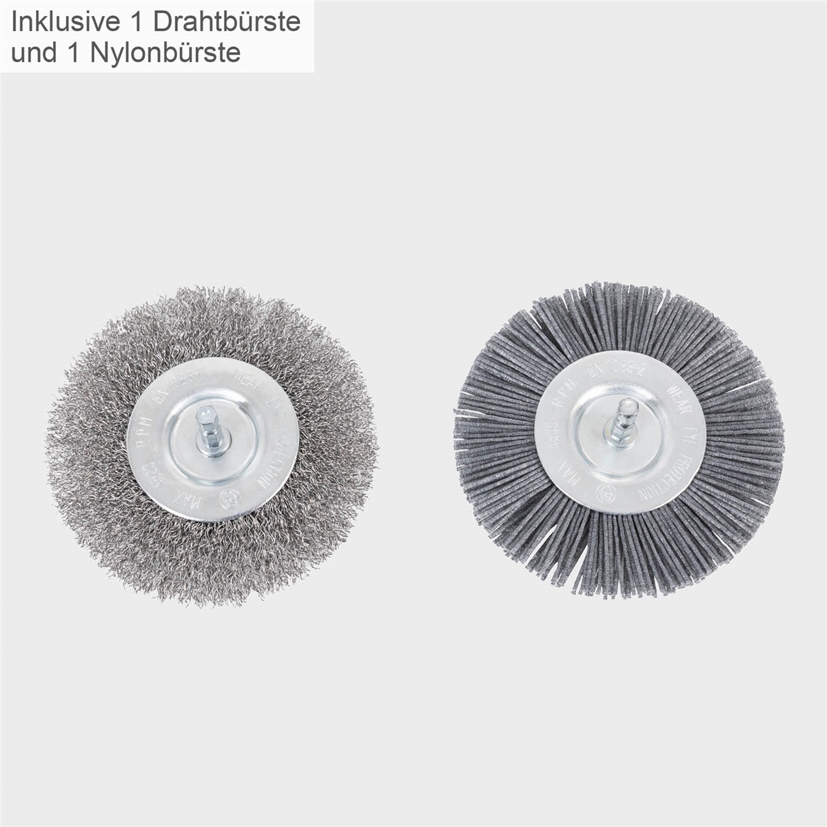 - Inklusive 1x Drahtbürste und 1x Nylonbürste