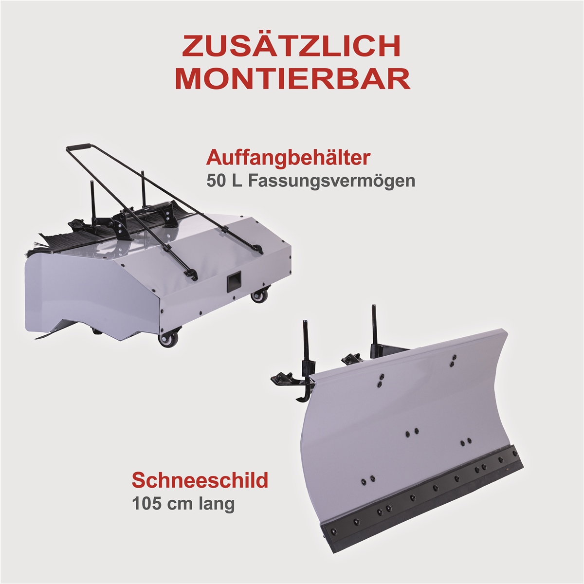 - Inklusive großem 105 cm langem Schneeschild