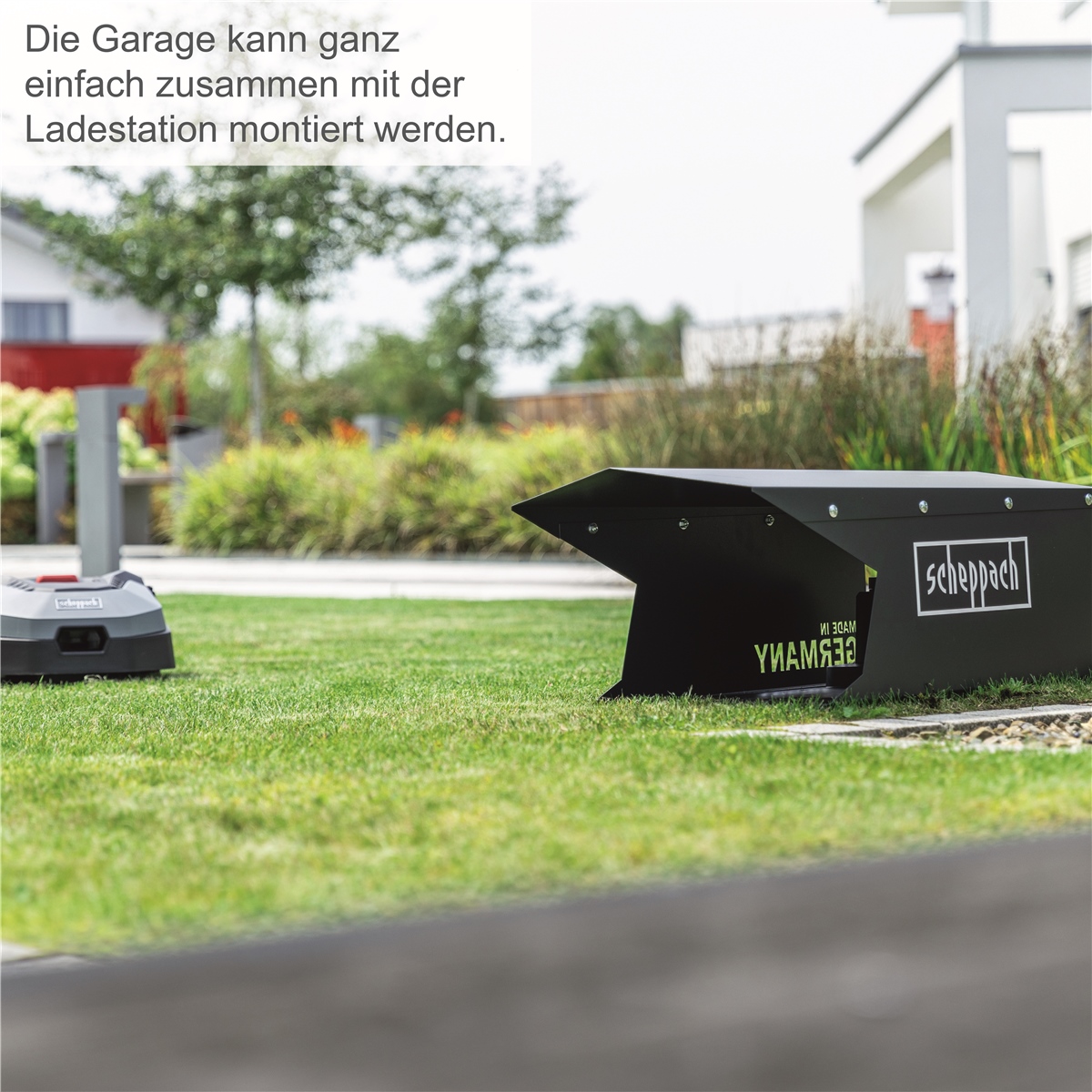 - Witterungsgeschützte Garage für die Scheppach Rasenmähroboter