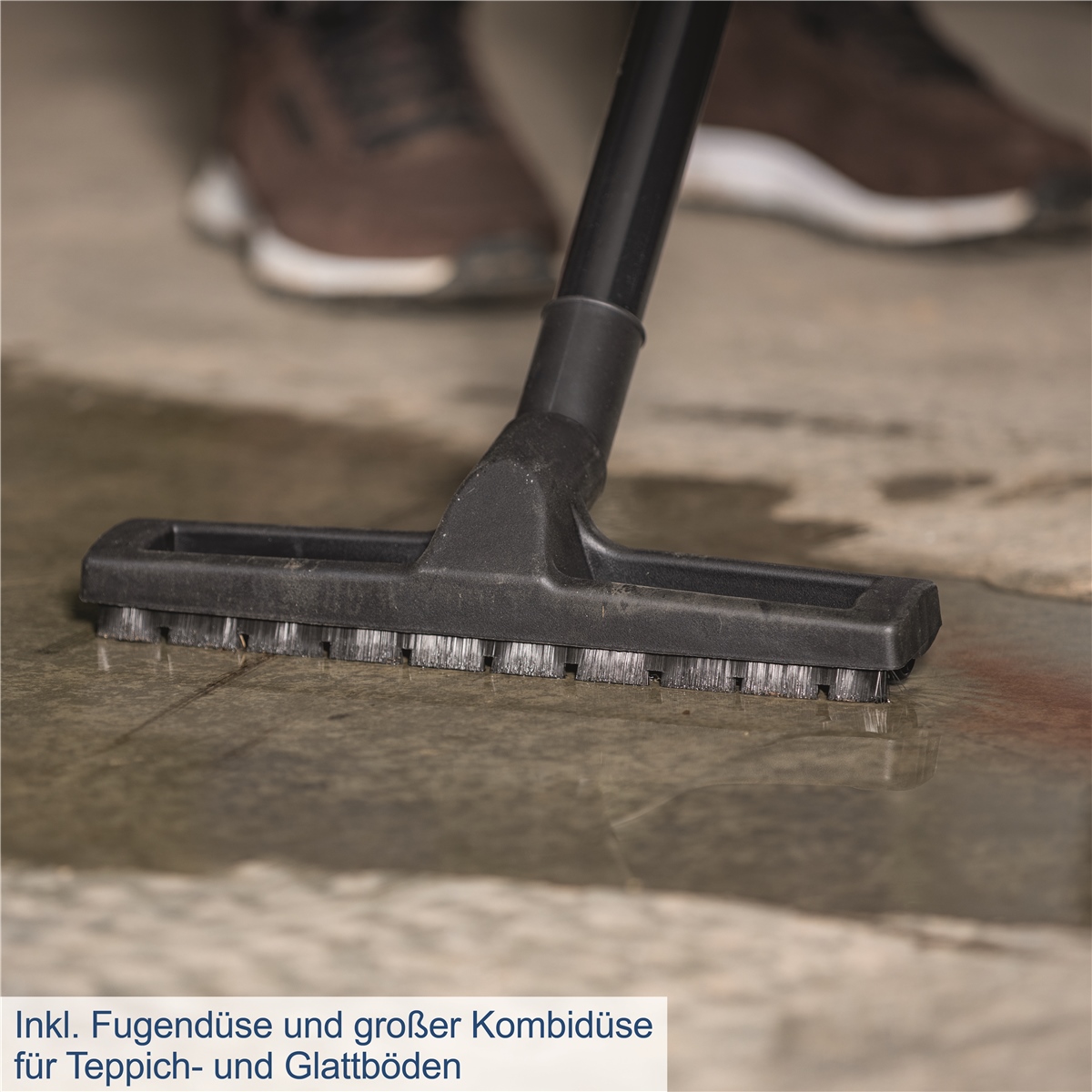- Inkl. Fugendüse und großer Kombidüse für Teppich- und Glattböden