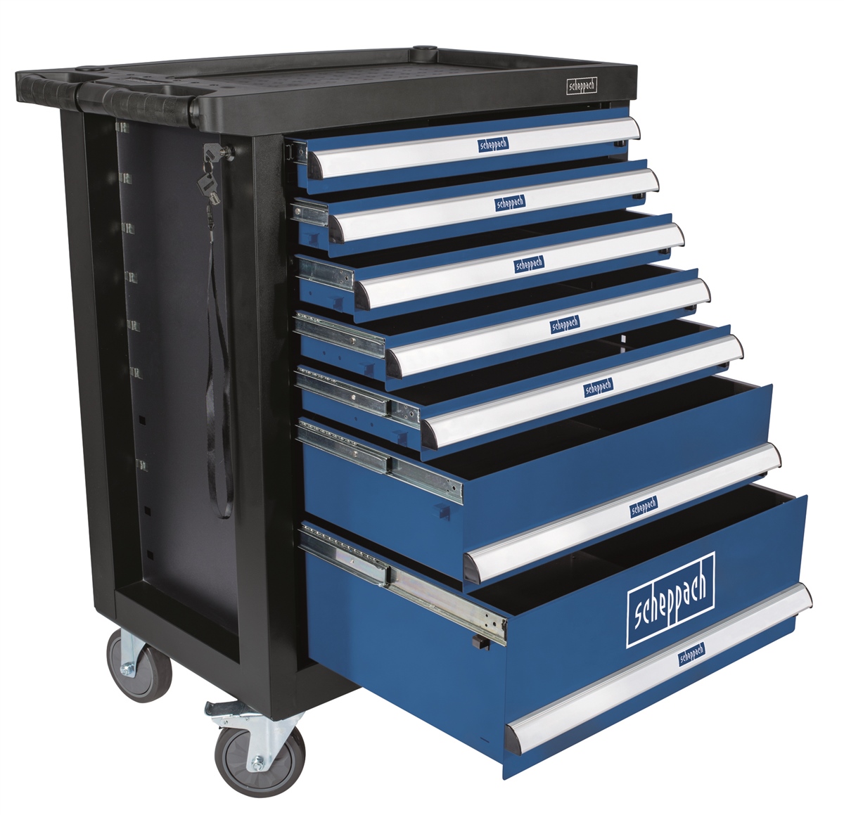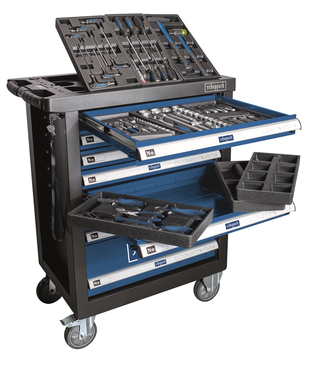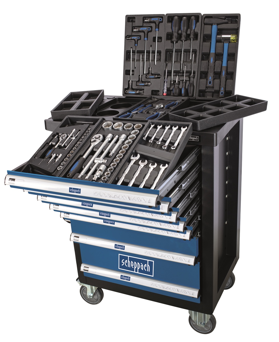 Scheppach TW1100 Werkstattwagen Premium bestückt 70 teilig Werkzeug 7 Schubladen