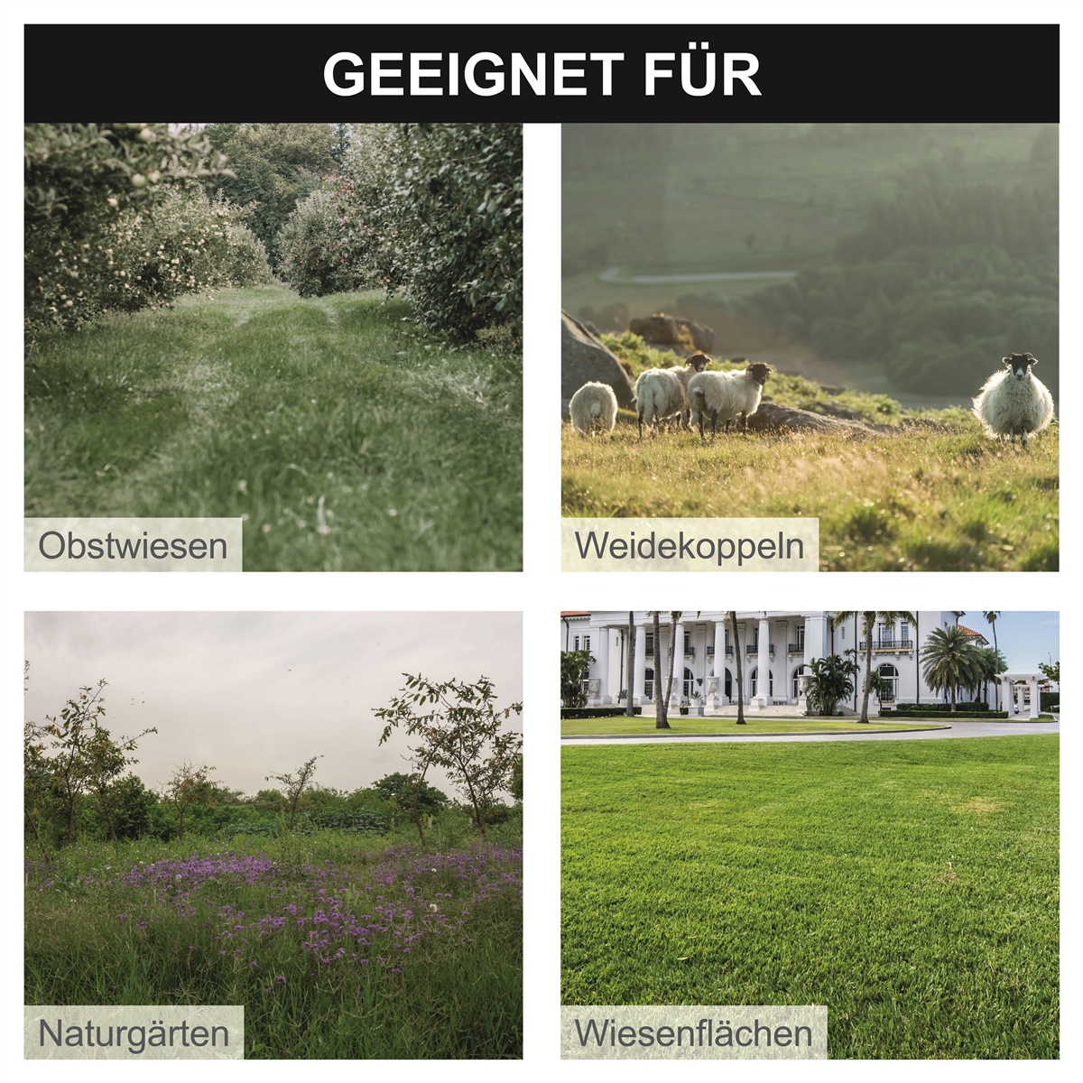 - Ideal für unwegsames Gelände und hohes Gras, z. B. große Wiesenflächen, Weiden oder Koppeln