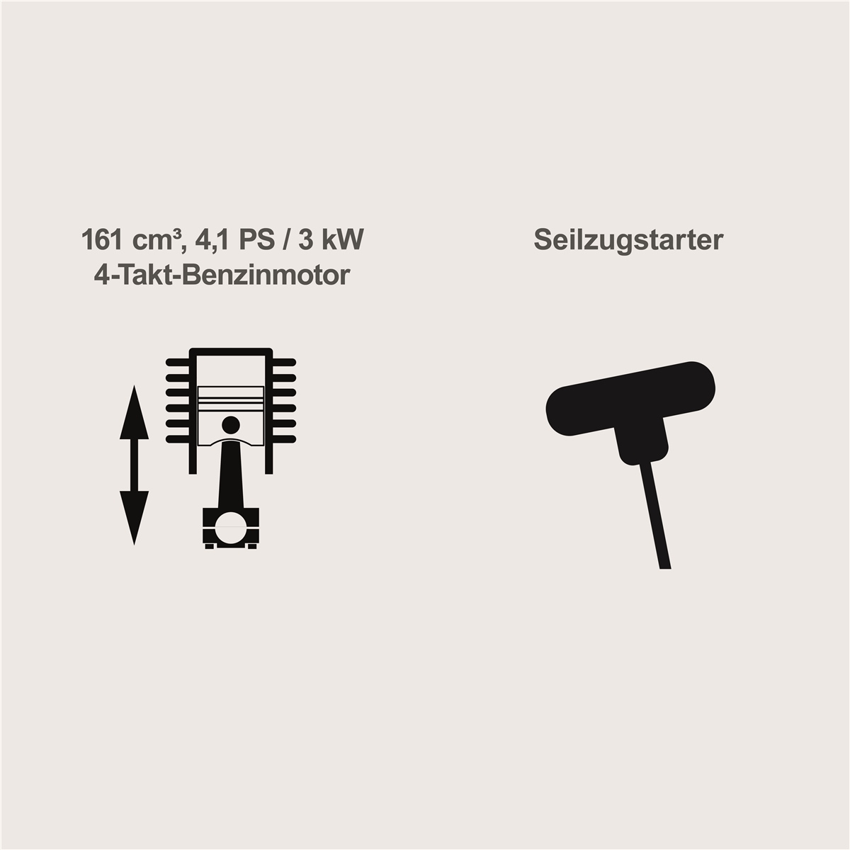 - Leistungsstarker 4,1 PS / 3 kW 4-Takt-Benzinmotor mit 161 cm³