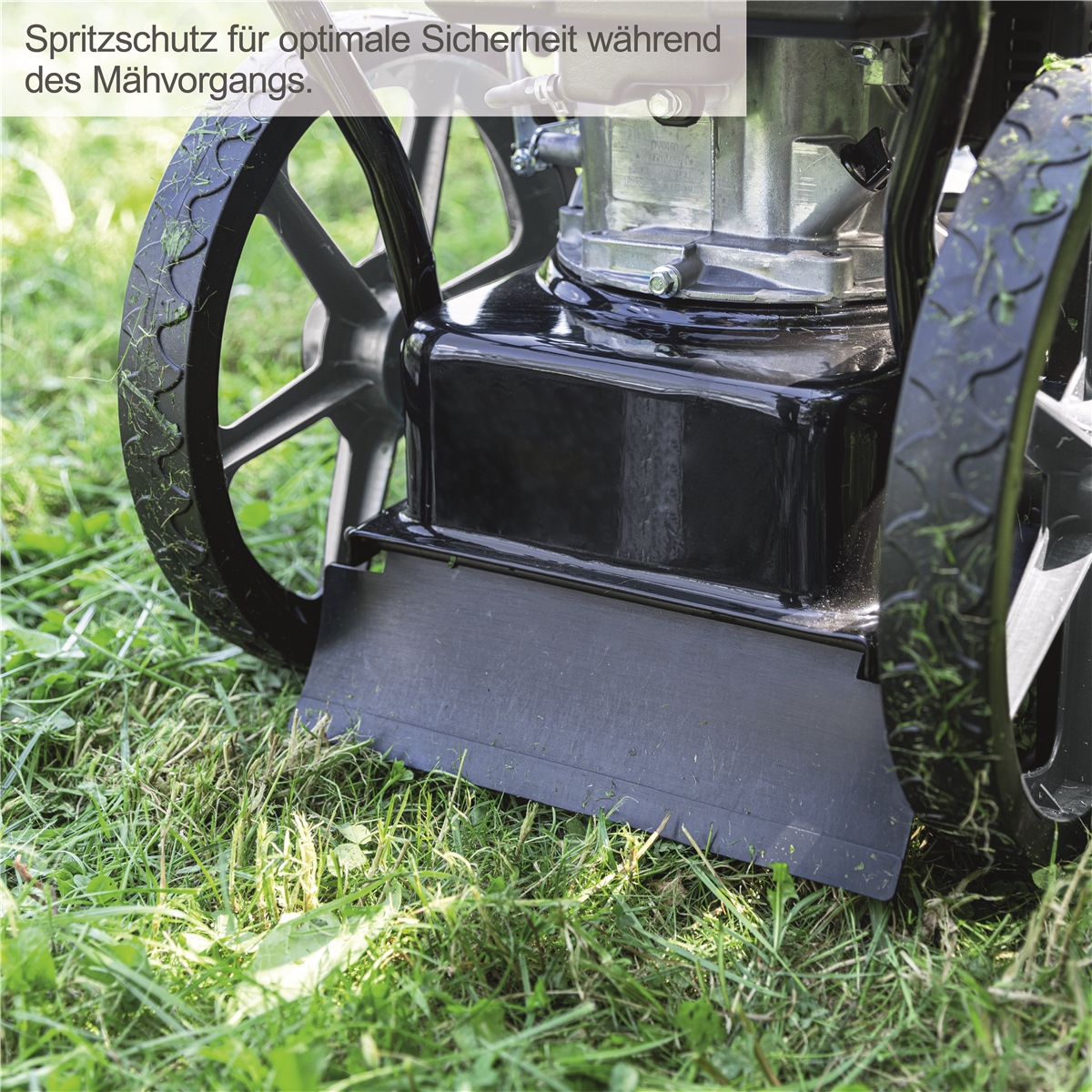 - Spritzschutz sorgt für optimale Sicherheit während des Mähens