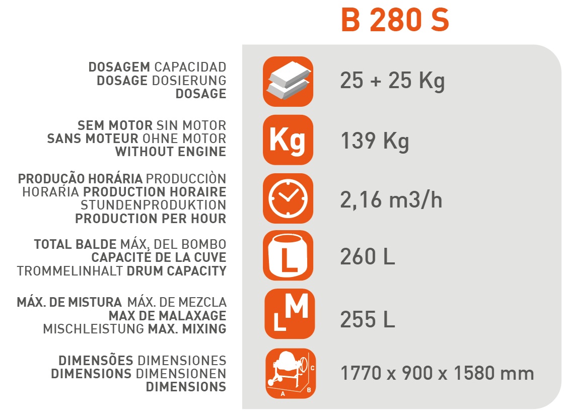 Preview: SIRL B280S Profi Betonmischer 260L 230V 2 PS Silent Leise 2,16m³/h Zahnkranzfrei