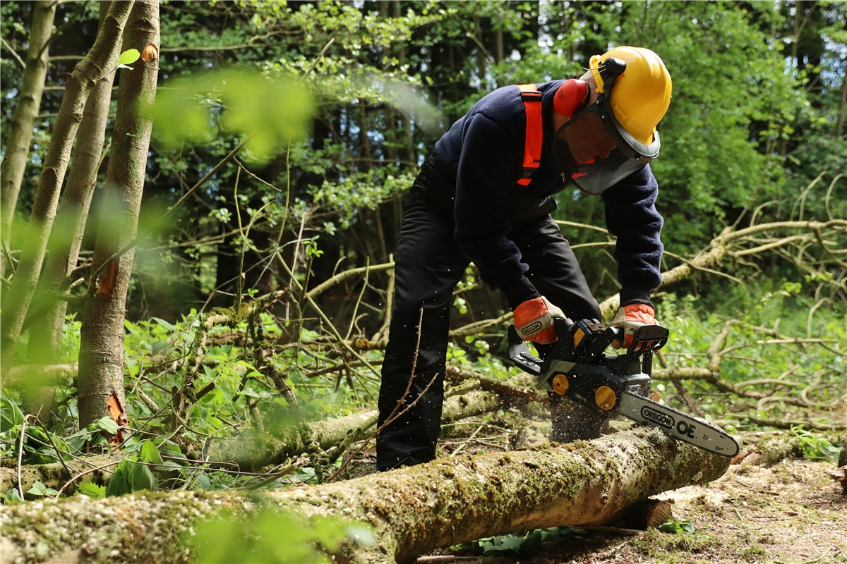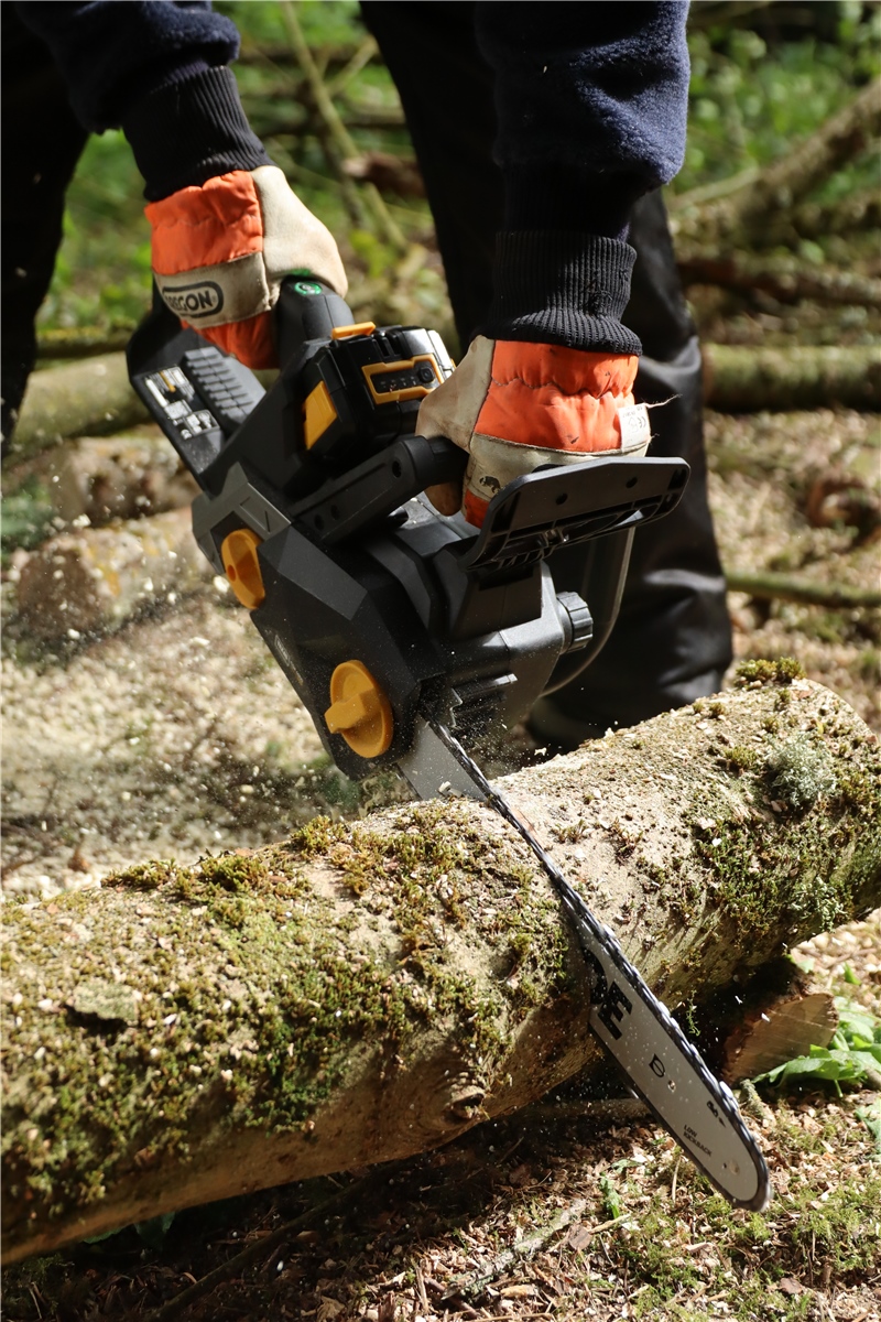 - Automatische Kettenschmierung und werkzeuglose Kettenspannung