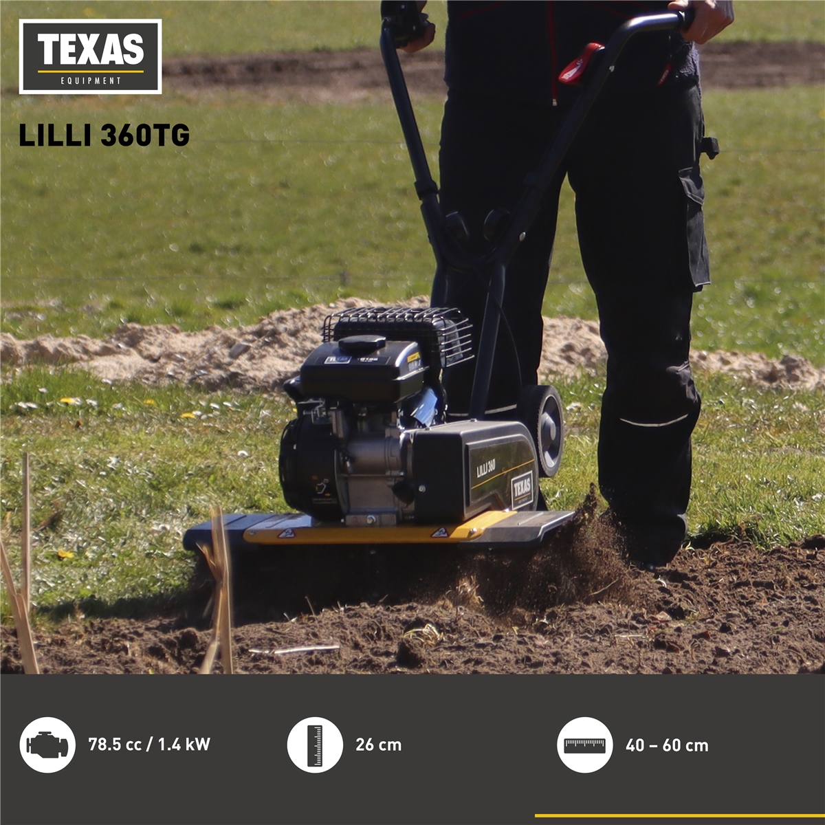 TEXAS Gartenfräse Motorhacke Bodenhacke Bodenfräse Pflug Benzin Lilli 360TG 60cm