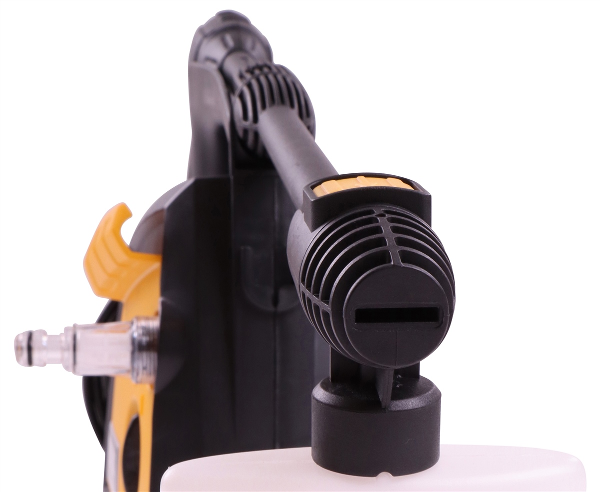 - Inkl. Verlängerungslanze mit Pistole, 3-in-1 Düse und Flasche für Reinigungsmittel