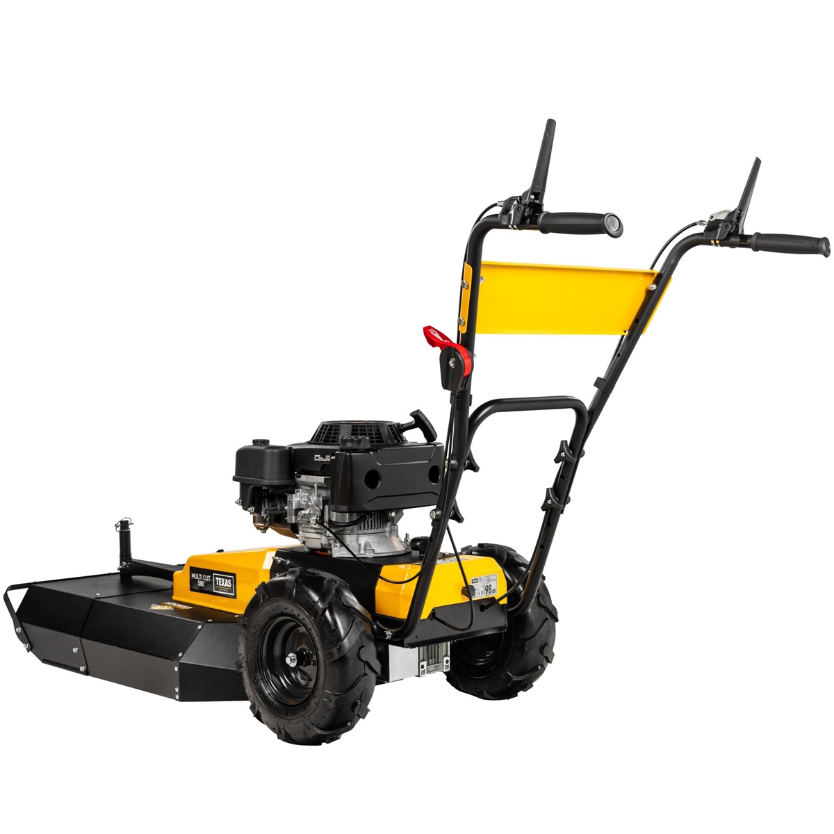 Bearbeiten Sie die grobe Arbeit mit dem TEXAS Multi Cut 580 Grasmäher, der mühelos dabei helfen kann, selbst große Flächen mit hohem und wildem Gras zu räumen. Der robuste 4-Takt-Motor treibt ein festes Messer mit einer Arbeitsbreite von 58 cm unter dem stabilen Schutzschild an und kann sowohl dickes und altes Gras als auch selbstwachsendes Unkraut mit Stielen von bis zu 1 cm Durchmesser bewältigen. Sie können das schwenkbare Vorderrad leicht durch einen Sporn ersetzen, was die Arbeit in höherem Gras erleichtert, da es reibungsloser vorwärts gleitet. Die Schnitthöhe kann zwischen 40 und 90 mm eingestellt werden, sodass Sie auch sehr überwachsene Bereiche problemlos mit diesem halbprofessionellen Grasmäher bewältigen können. Wählen Sie zwischen zwei Fahrgeschwindigkeiten und finden Sie ein Tempo, das sowohl den Bedingungen als auch Ihrer eigenen Geschwindigkeit entspricht. Passen Sie die Höhe des Lenkers an, damit Sie immer in einer bequemen Position mit gutem Griff am Gerät arbeiten können. Die großen Hinterräder mit ausreichend Profil bieten reichlich Traktion beim Navigieren durch selbst nasses und dichtes Gelände. Der Multi Cut 580 erleichtert es Ihnen, die grobe Arbeit mit hohem und dichtem Gras auch auf den größten Flächen zu bewältigen.