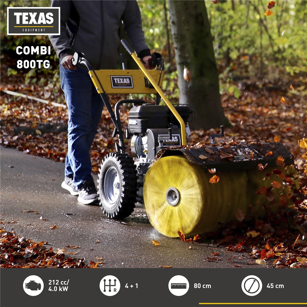 TEXAS Kehrmaschine Benzin 80cm Schneeräumer Laubkehrer Combi 800TG Set 2in1