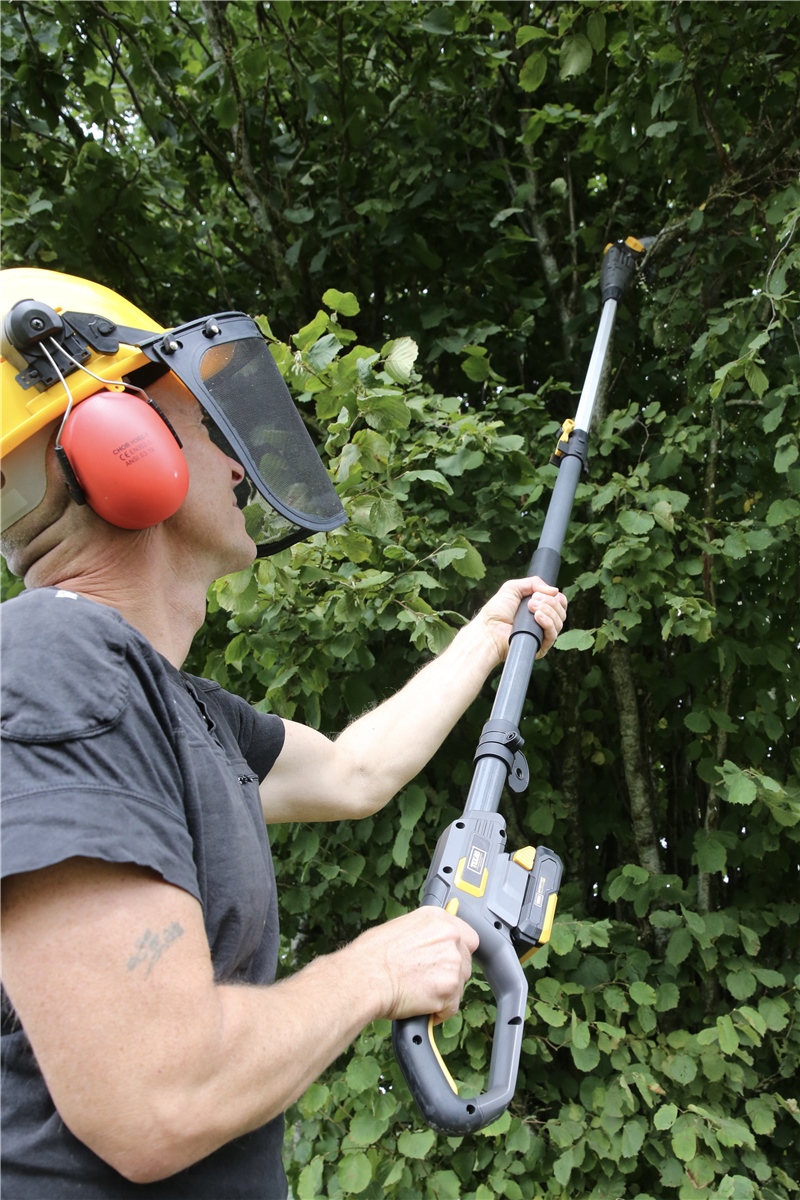Der Akku-Hochentaster basiert auf der neu entwickelten Texas 20-V-Plattform, die eine große Auswahl an Akku-Gartenmaschinen umfasst. Die 20V-Serie zeichnet sich durch die einfache Bedienung und minimale Wartung, weniger Vibrationen und ein sehr geringes Gewicht aus.