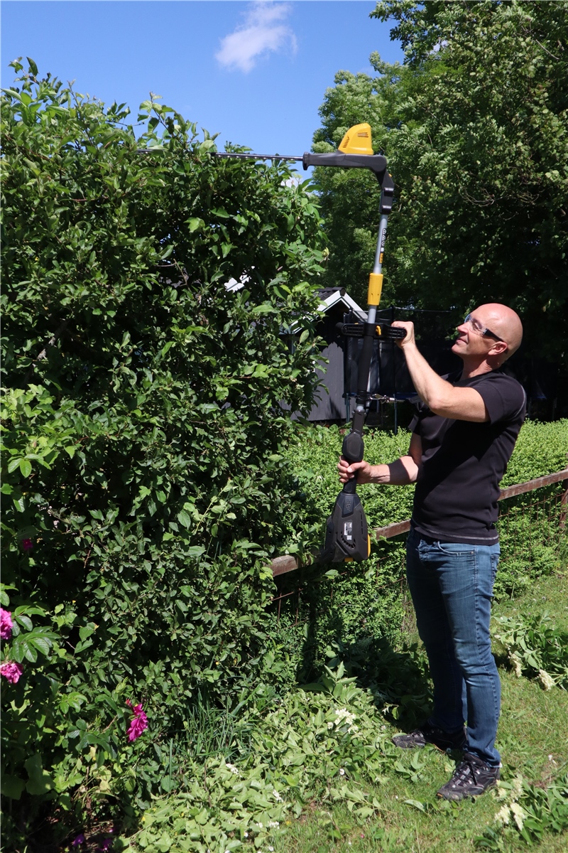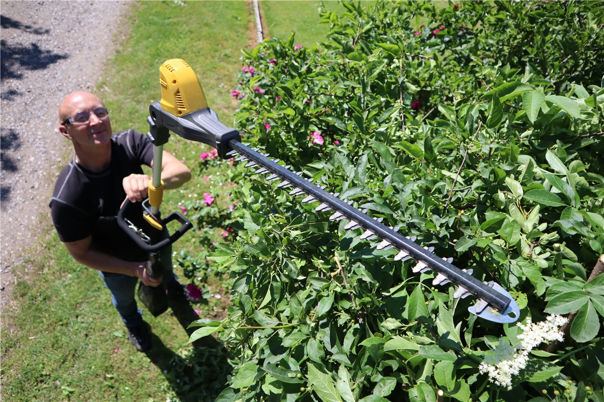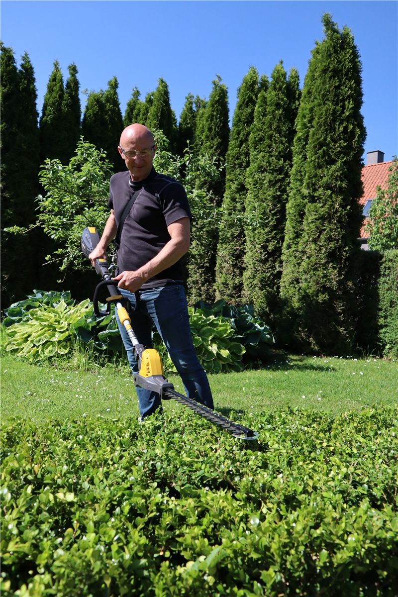 Die Akku-Heckenschere basiert auf der neu entwickelten Texas 58-V-Plattform, die eine große Auswahl an Akku-Gartenmaschinen umfasst. Die 58V-Serie zeichnet sich durch die einfache Bedienung und minimale Wartung, weniger Vibrationen und ein geringes Gewicht aus.
