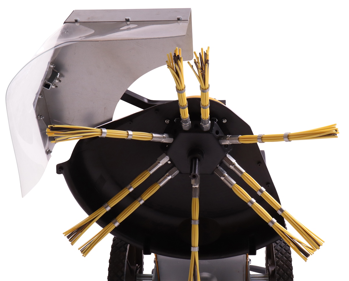 Die Pro Weed 710 ist mit zwei großen 14 Zoll Kugellagerrädern ausgestattet, die ein bequemes Manövrieren in verschiedene Geländearten sicher stellen. Dieses Modell ist ideal für größere Pflasterbereiche, die von Gras und Unkraut gereinigt werden müssen. Die Maschine ist sehr benutzerfreundlich und bietet einen ergonomischen Arbeitsablauf, bei dem weder Rücken noch Schultern belastet werden. Die große Kunststoffabdeckung schützt den Motor vor Schmutz und Grasresten. Die Pro Weed 710 verfügt über 9 Bürsten, die mit Nylon und Metall kombiniert sind. Dies garantiert eine sehr lange Lebensdauer der Bürsten.