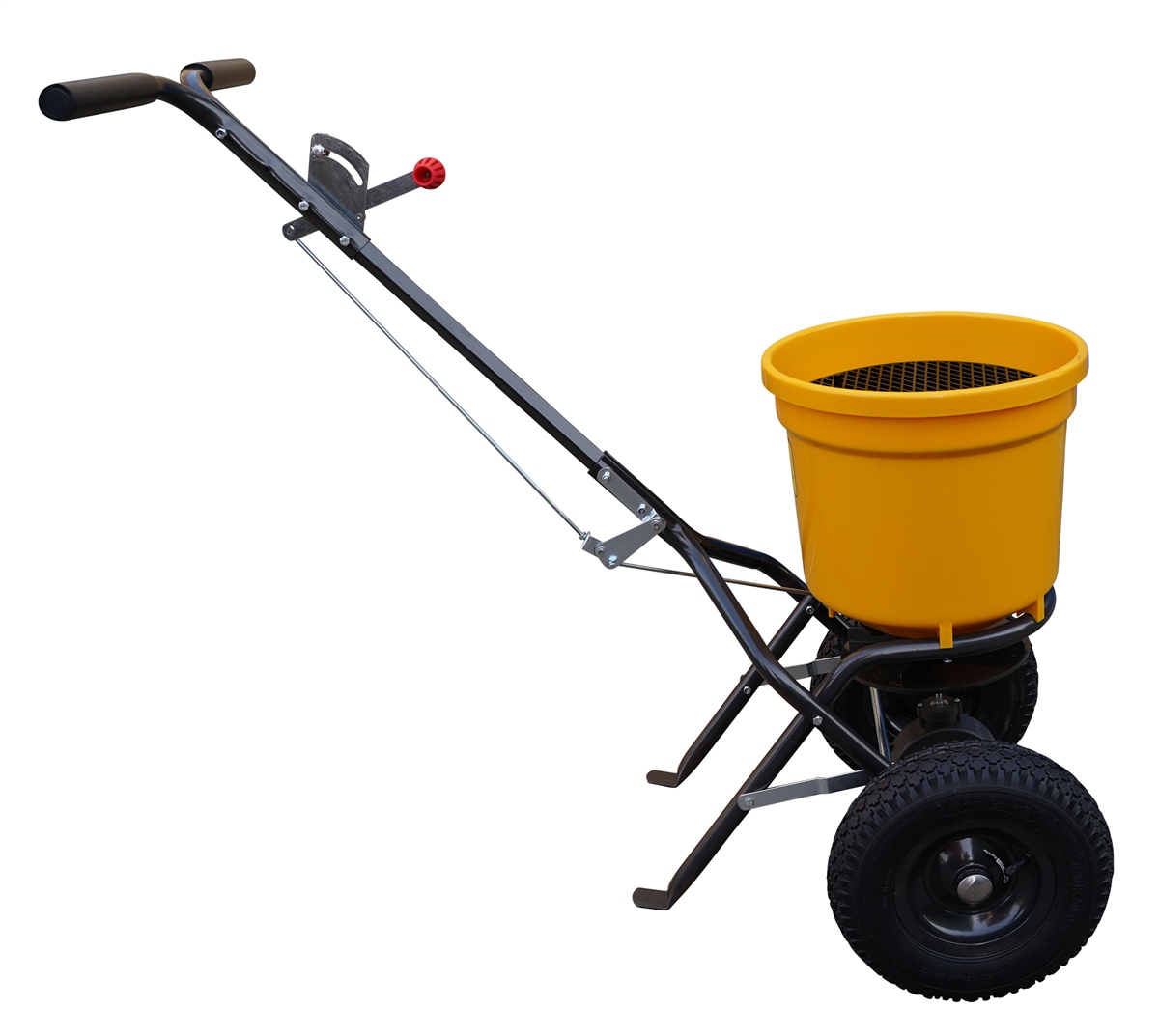 Der Behälter ist 25L. Der sanfte Griff und die Luftgummiräder sorgt für eine Maschine, die einfach und bequem zu bedienen ist. Der Streuwagen ist einfach zu benutzen und wird leicht transportiert.
