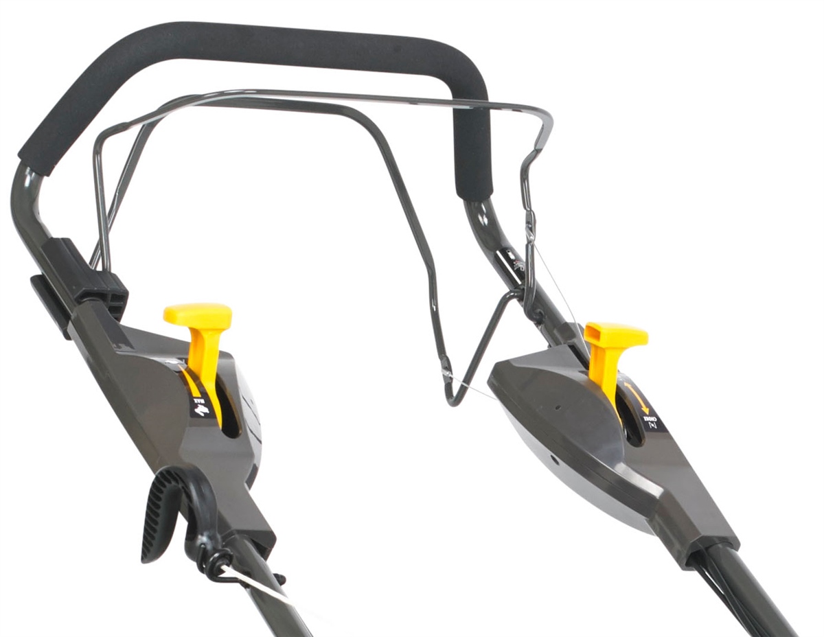 einen großen Griff zur Höhenverstellung, sodass die Schnitthöhe schnell und einfach