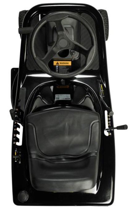 Dieser Aufsitzmäher ist mit einer Metallabdeckung / Metallabschirmung ausgestattet.