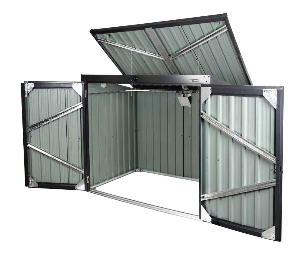 - Mülltonnenbox aus verzinktem Stahlblech (pulverbeschichtet)